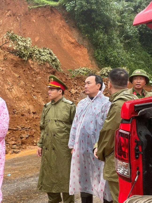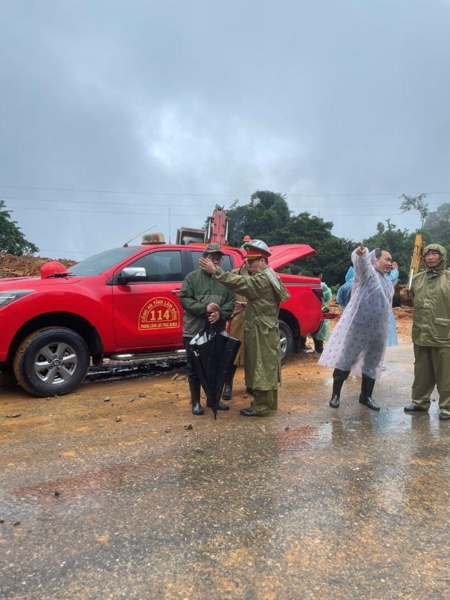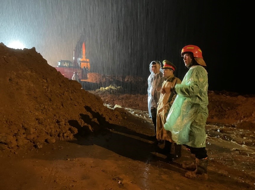 Ảnh 1: Đại tá Nguyễn Minh Khương trực tiếp đến hiện trường và chỉ huy cứu nạn, cứu hộ ngay trong đêm