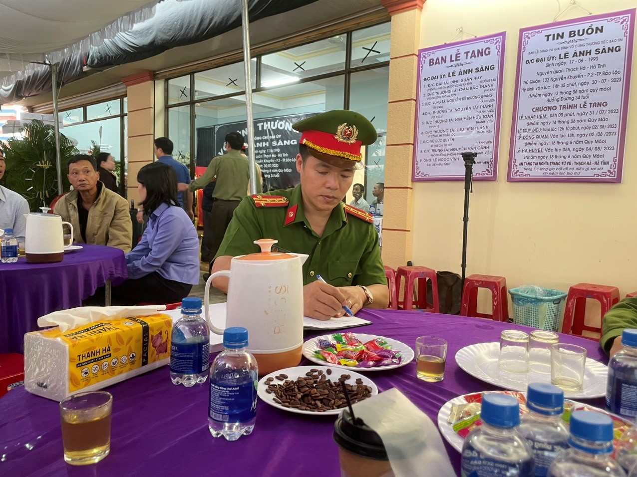 Ảnh 6: Đại tá Nguyễn Minh Khương thăm, viếng và viết sổ tang tại lễ tang liệt sĩ Đại uý Lê Ánh Sáng