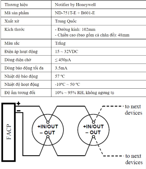 Tính năng, đặc điểm của Đầu báo nhiệt gia tăng địa chỉ ND-751T-E: