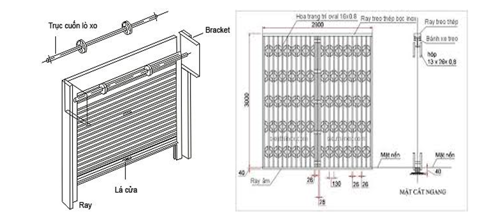 Hình ảnh mô tả cấu tạo của cửa cuốn, cửa xếp