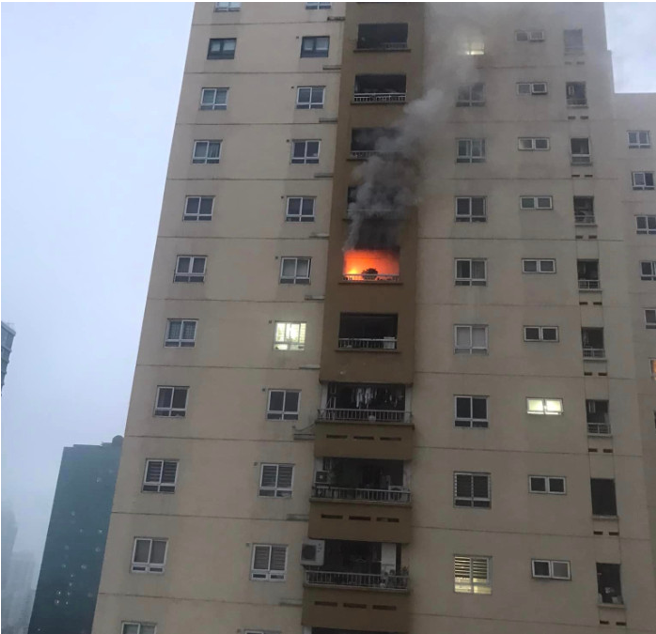 Hình 2: Vụ cháy máy sấy quần áo tại Chung cư Vimeco sáng ngày 15/12/2023 do người dân chụp lại