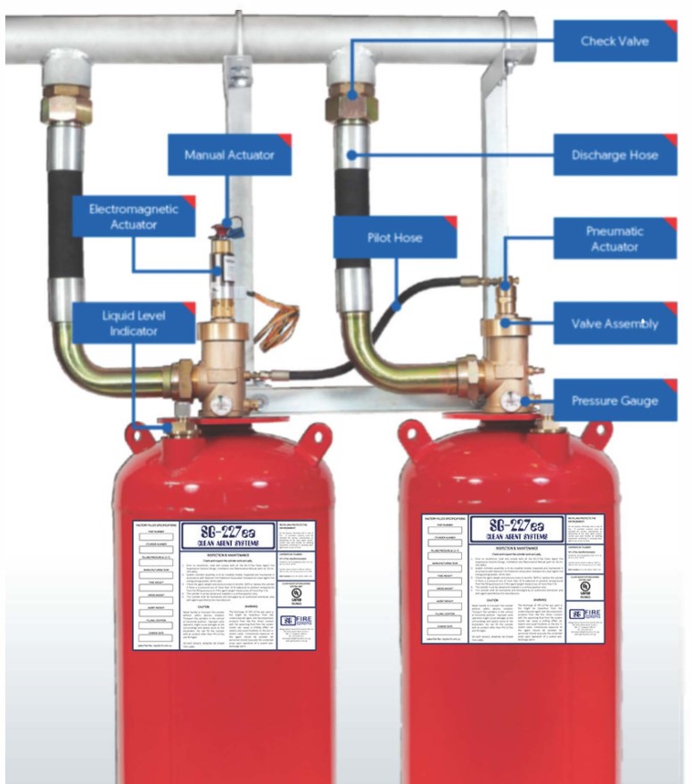 Hệ thống báo cháy, chữa cháy FM200 bao gồm các thành phần sau: