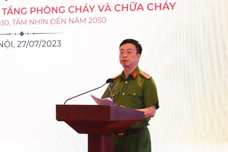 Đại tá Bùi Quang Việt, Phó Cục trưởng Cục Cảnh sát PCCC và CNCH công bố Quyết định số 819 ngày 7/7/2023 của Thủ tướng Chính phủ phê duyệt Quy hoạch hạ tầng phòng cháy và chữa cháy thời kỳ 2021 - 2030, tầm nhìn đến năm 2050.